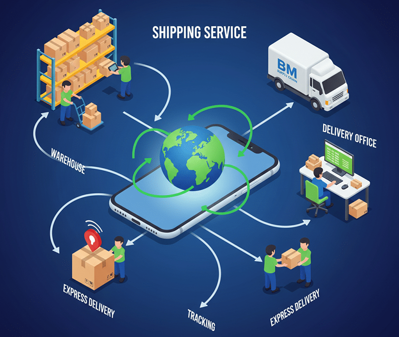Packages are dispatched globally with tracking, customs handling, and delivery monitoring.